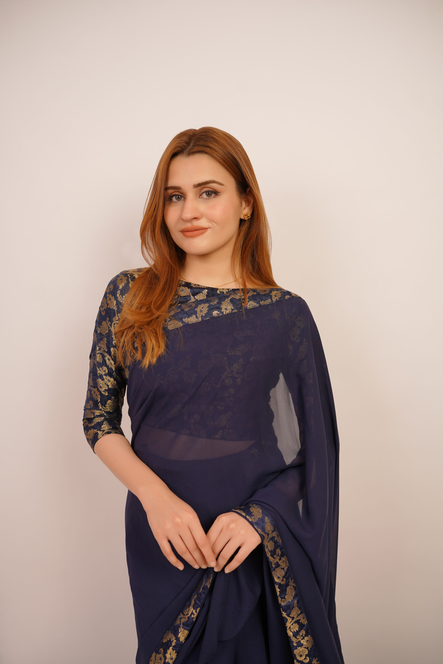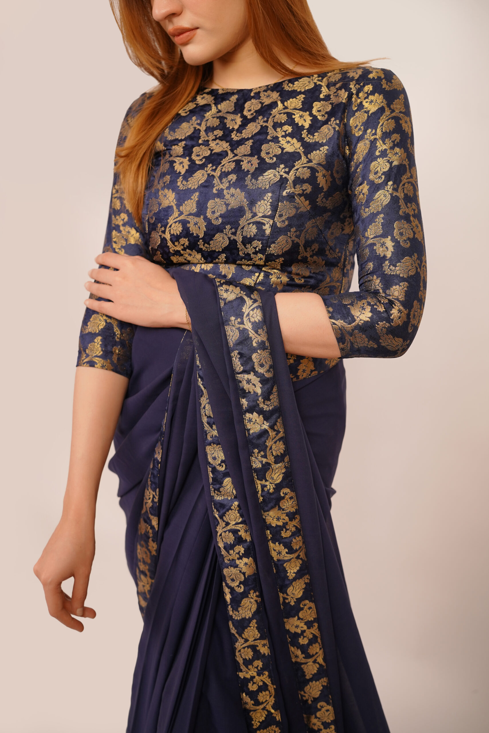 Adorned with intricate banarsi blouse designs and crafted from delicate chiffon in captivating blue hues, each piece exudes timeless grace and sophistication. Elevate your wardrobe with the perfect blend of tradition and contemporary style.