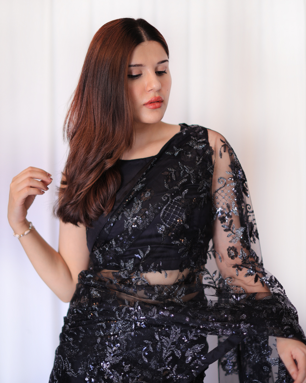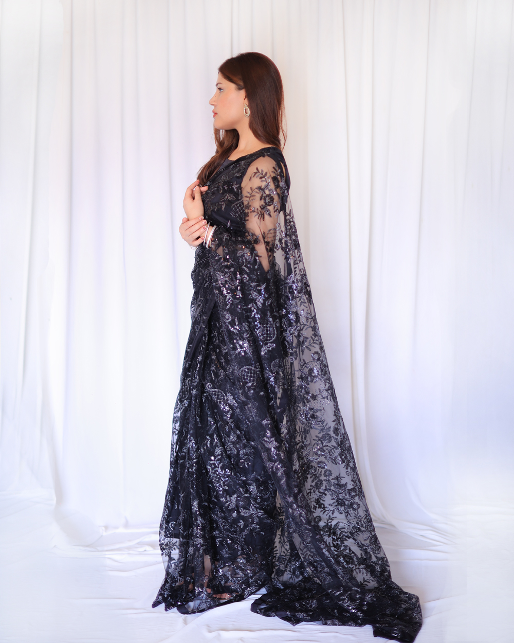 Embrace the Timeless Charisma of this Black Swan Saree this season.