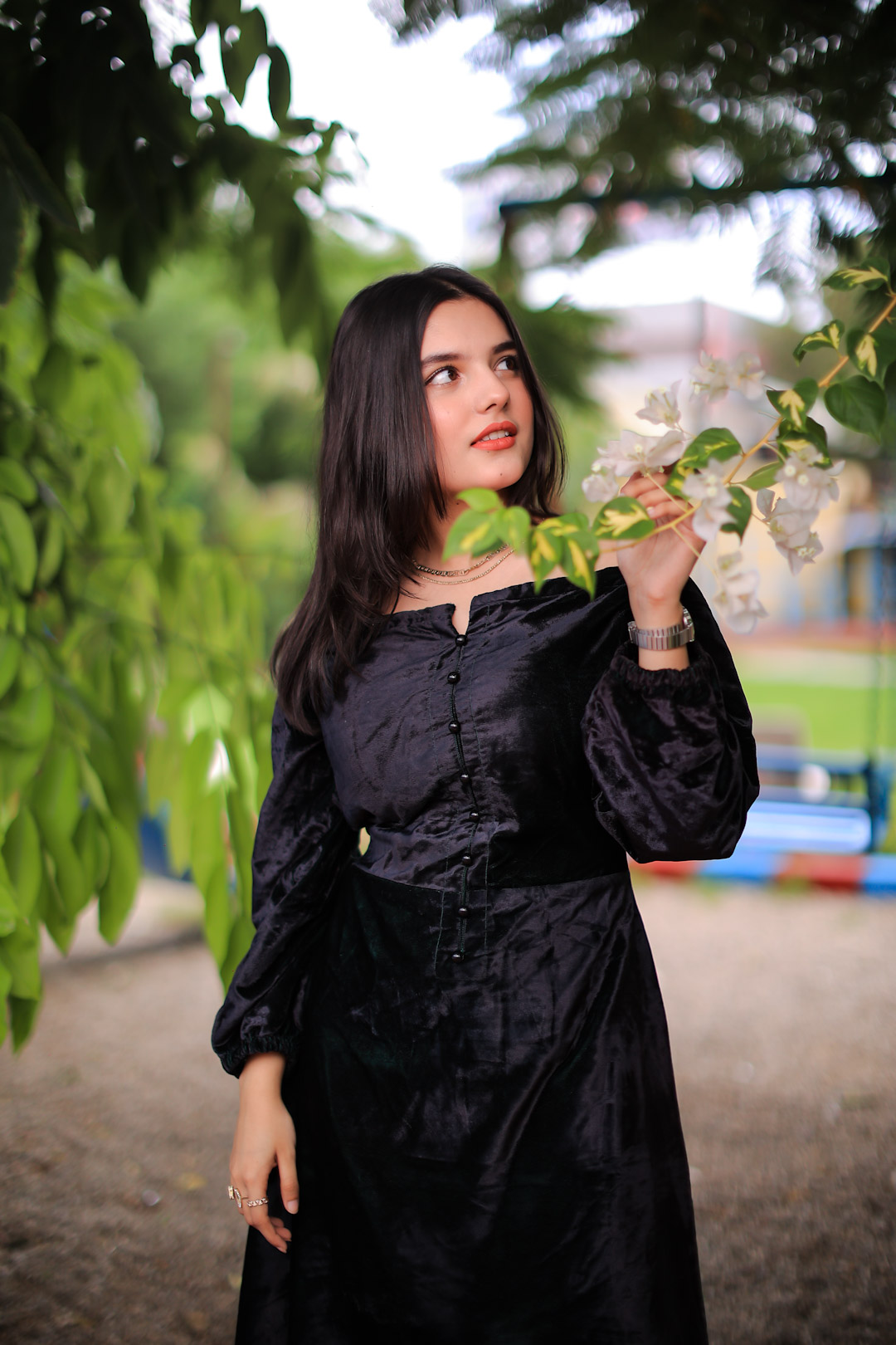 Representing our velvet collection with this gorgeous dress, featuring a prominent off-shoulder neckline and slightly puffed sleeves that ooze elegance and ultimate feminity.