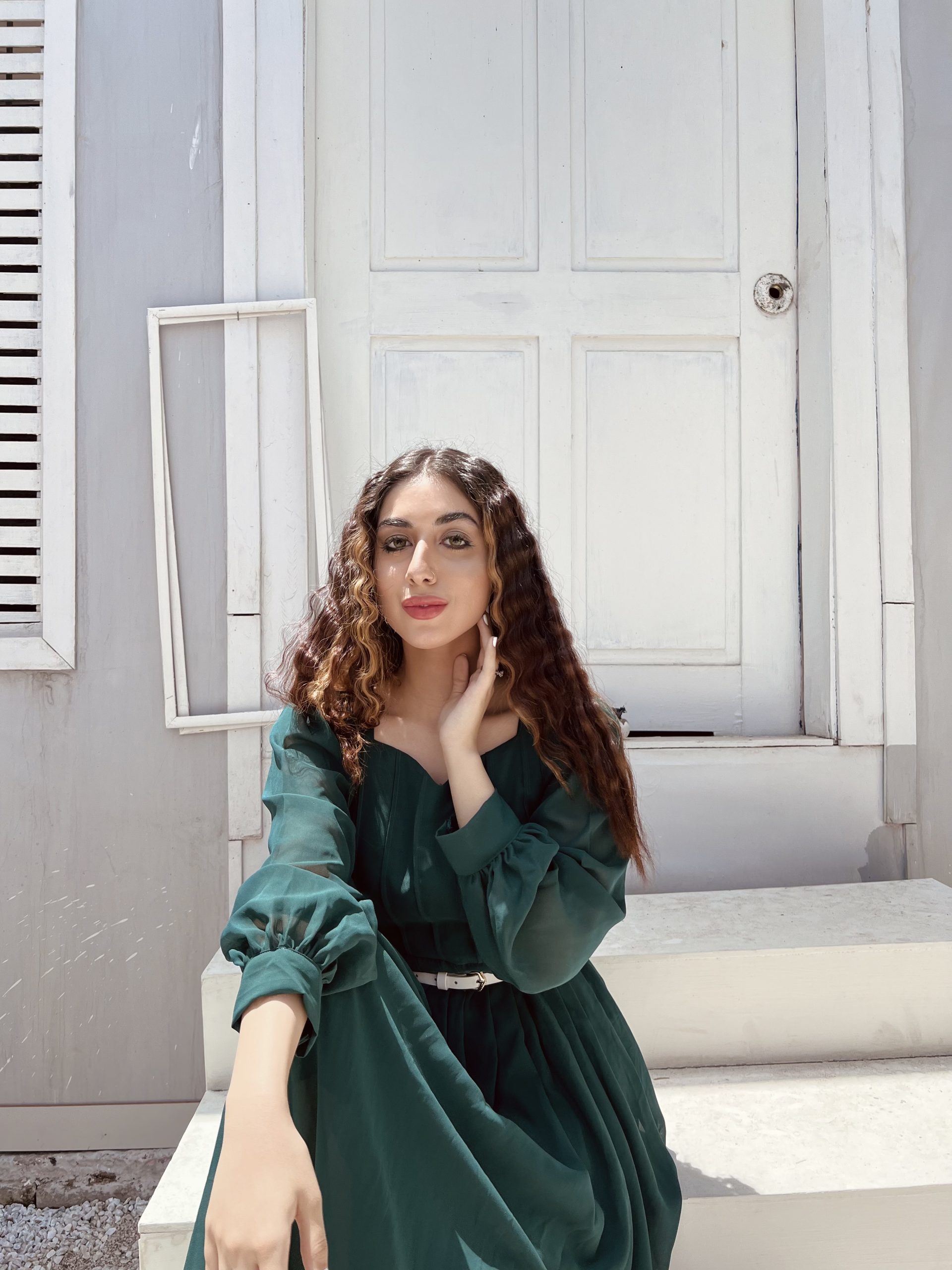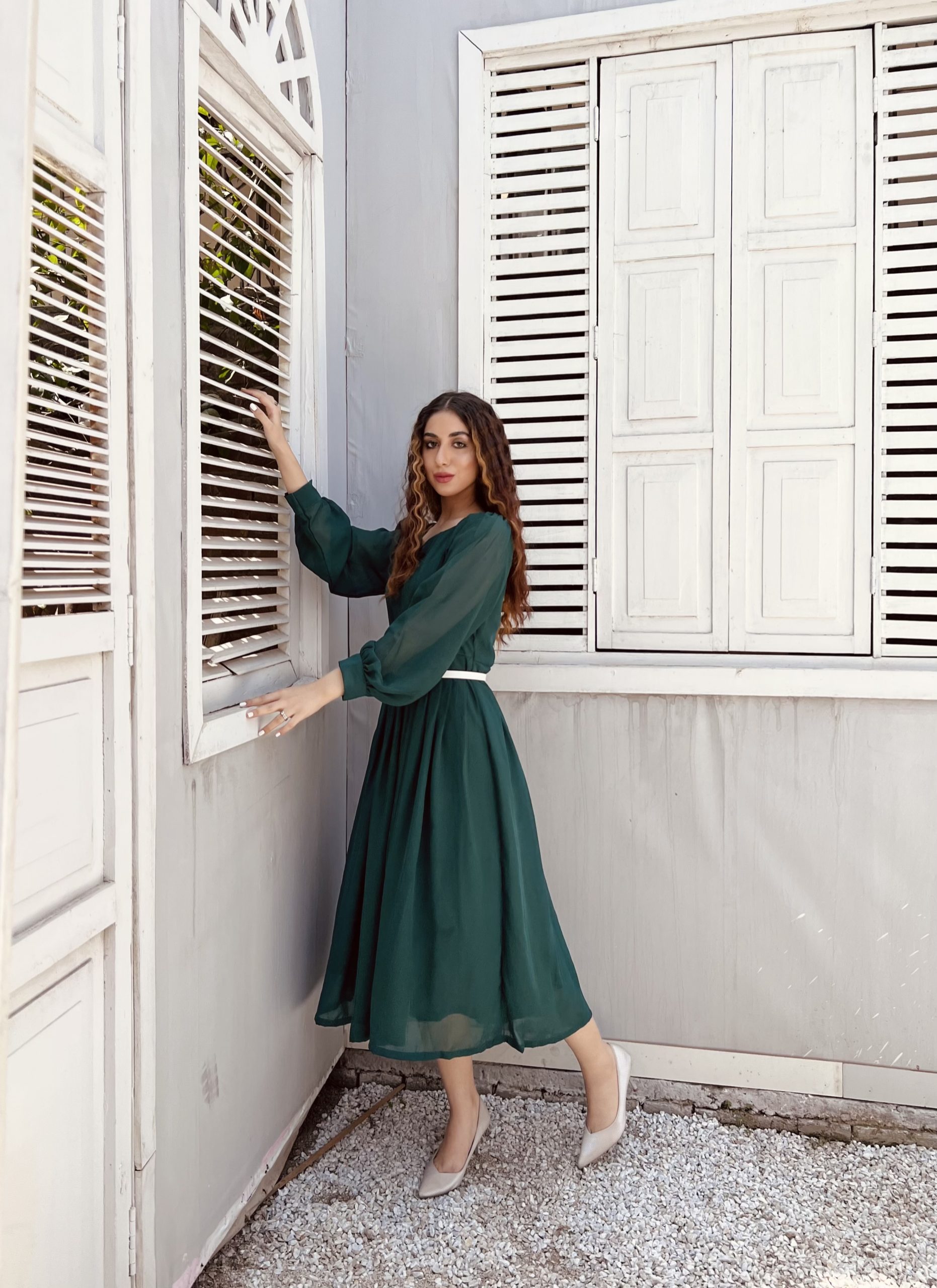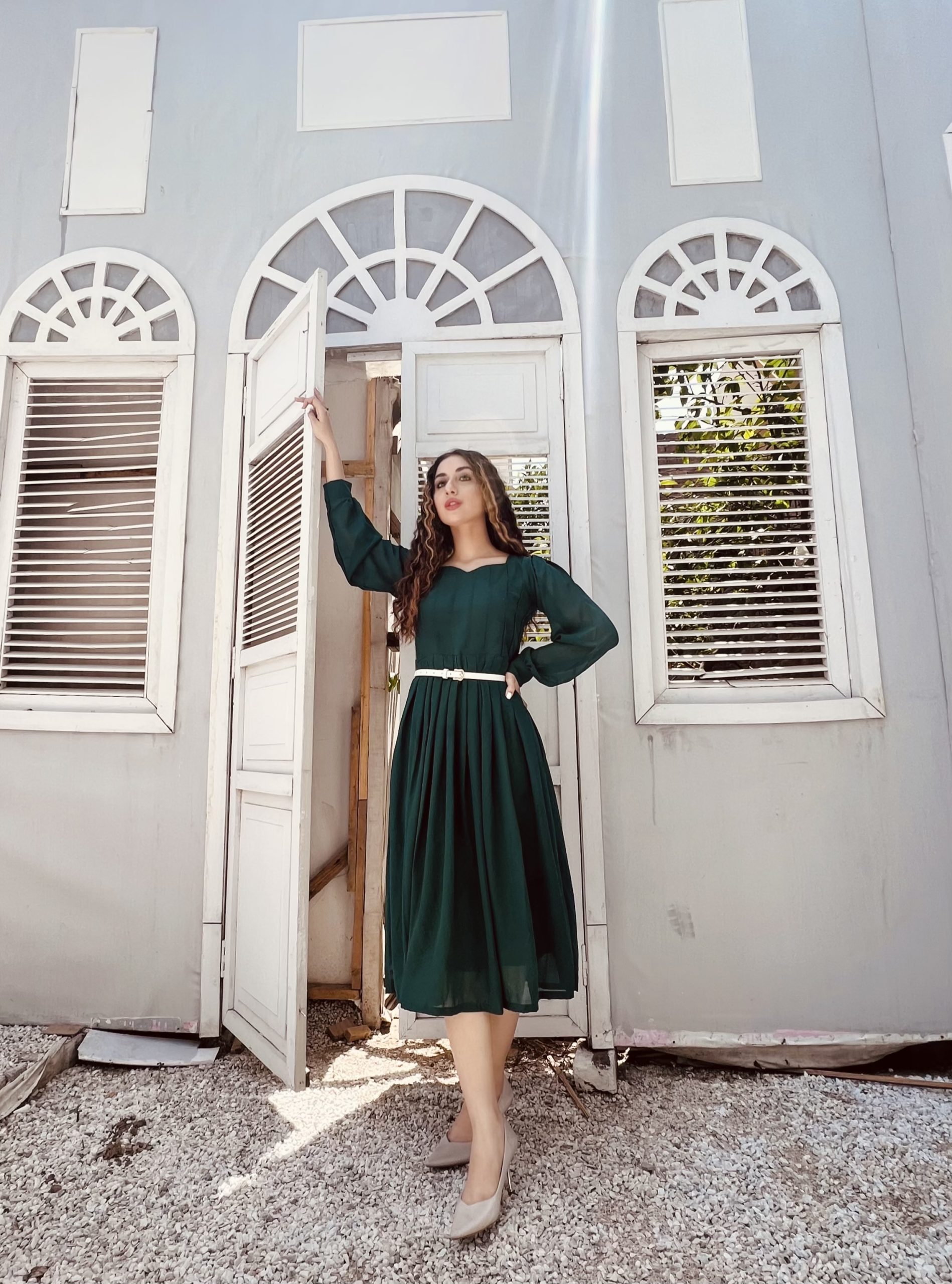 A classic dress with intricate pleats and a modish belt, trendy neckline and sleeves. A perfect fit for your wardrobe!