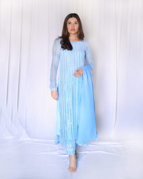 Feroza” is a stunning three-piece dress crafted from luxurious cut dana work over shirt which features an exquisitely embroidered heavy dupatta that beautifully complements the shirt ensemble, adding a touch of intricate detail.