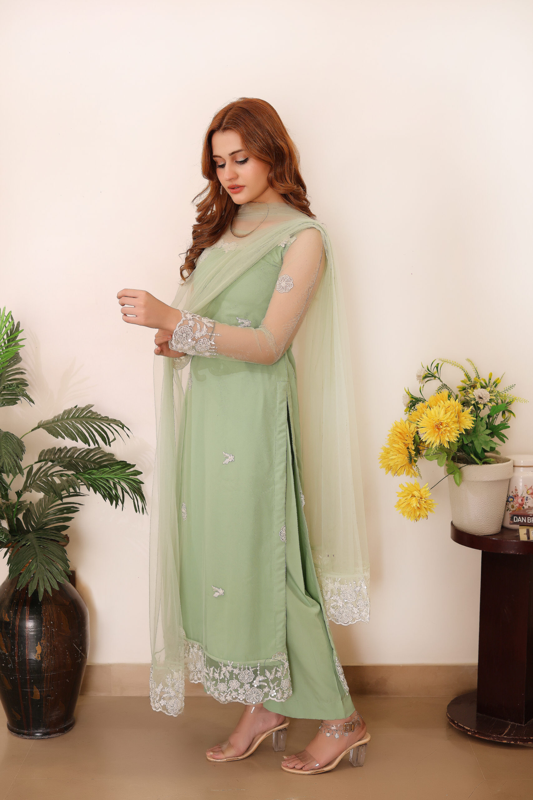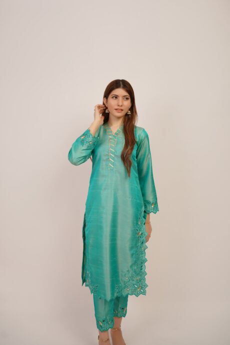 Misty Mint: Embrace the serenity with our stunning Three-Piece Ensemble.