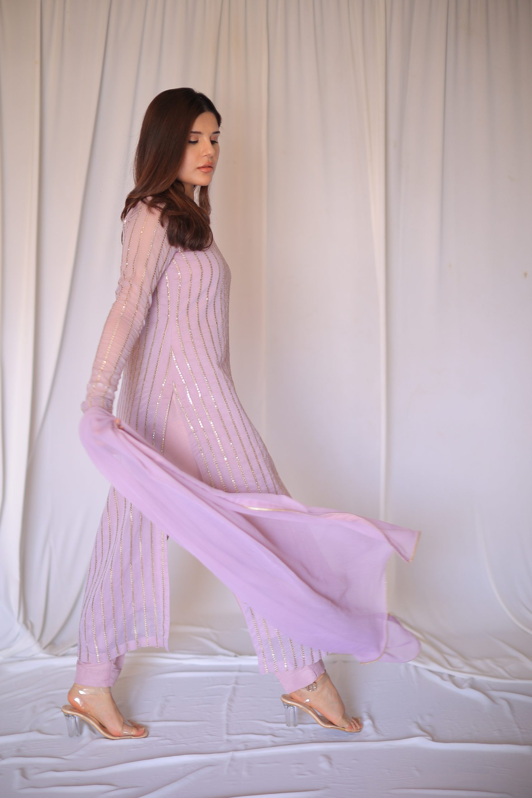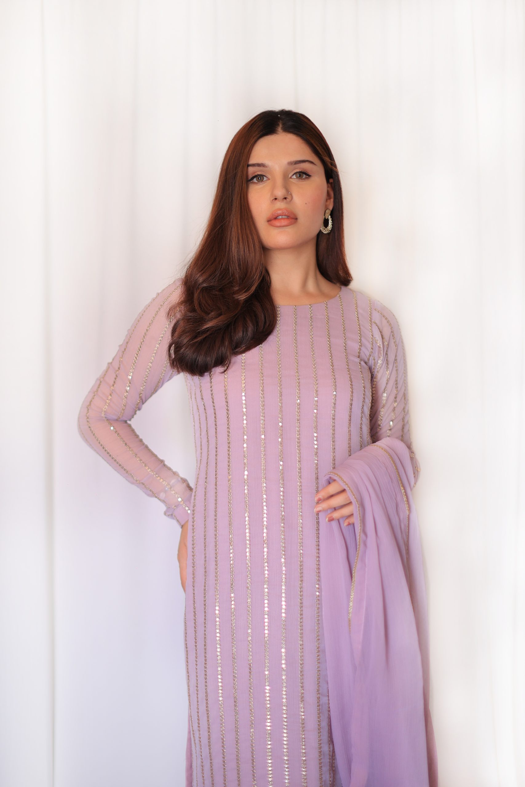 RONAQ: Embrace the serenity of lilac with our stunning Three-Piece Ensemble.