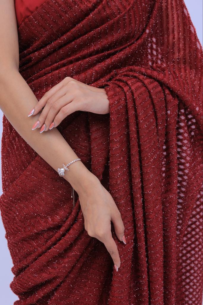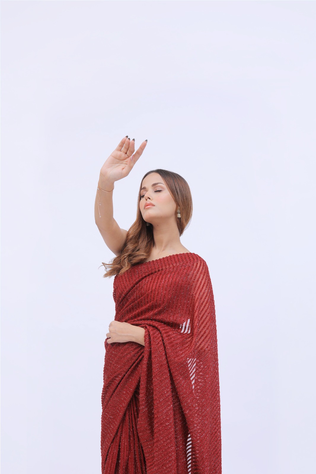 Embrace the Timeless Charisma of this Royal Crimson Saree this season.